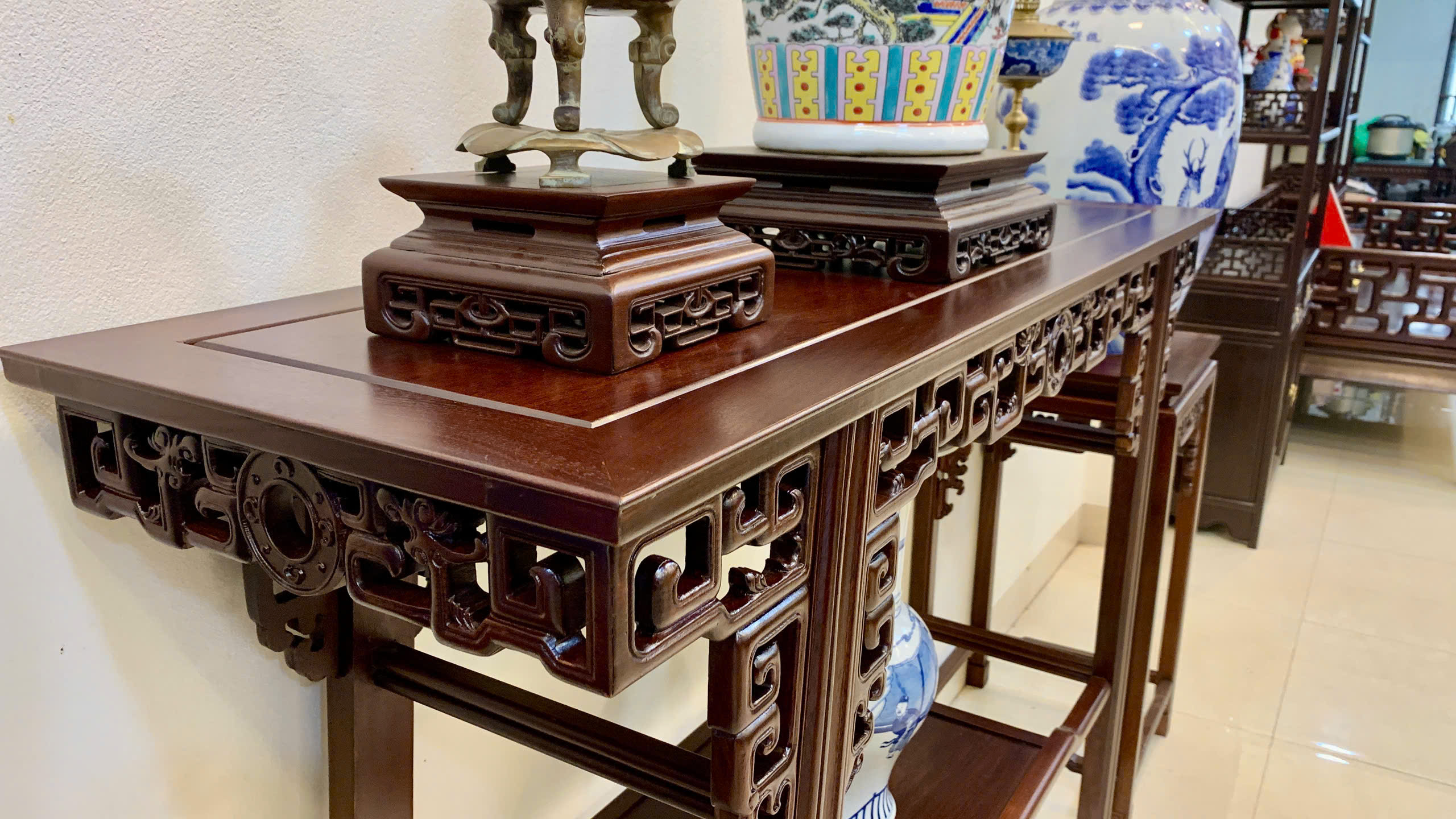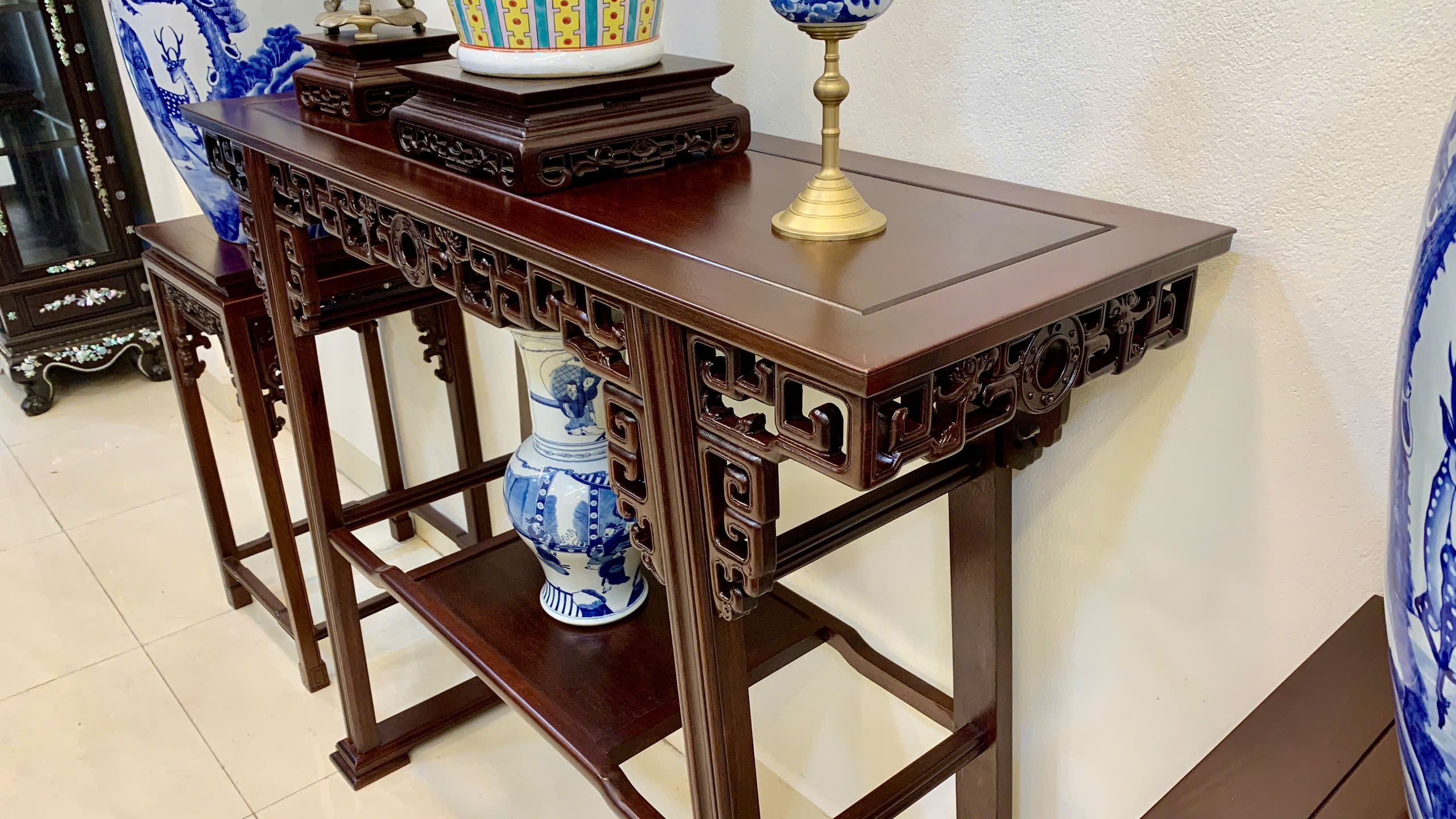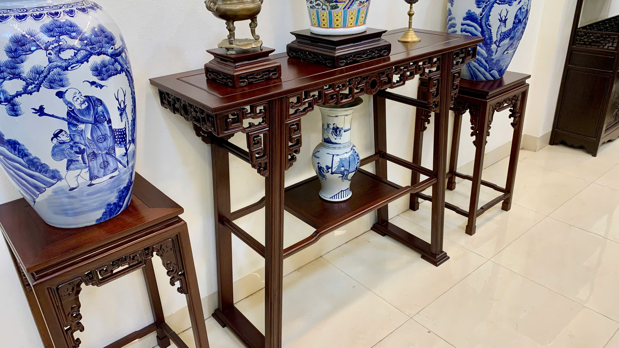 • Phù hợp nhiều không gian: phòng khách cổ truyền, nhà thờ họ, phòng thờ, sảnh trưng bày hoặc phối cùng các bộ trường kỷ, ghế móc mỏ, ghế minh…