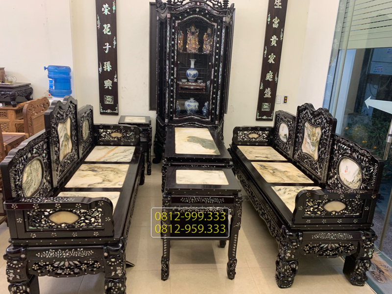 Ảnh: bàn ghế trường kỷ tam sơn khảm ốc