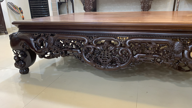 Sập Ngũ Phúc Chân Hươu Gỗ Gụ Ta Đục Thủ Công Nét Từng Chi Tiết Nhỏ