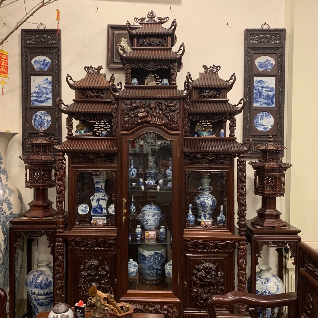Tủ Bày Đồ Phòng Khách Gỗ Gụ