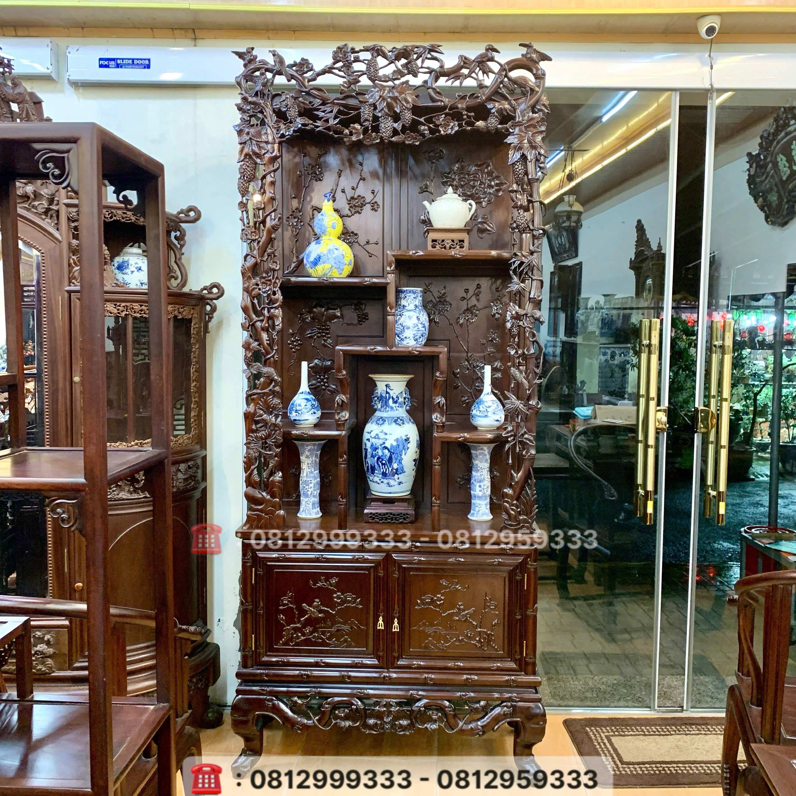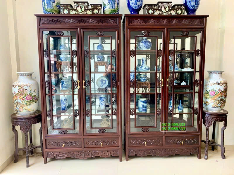 11. Tủ trang trí gỗ gụ - Tủ bày đồ cổ đục chạm cầu kỳ tinh xảo.