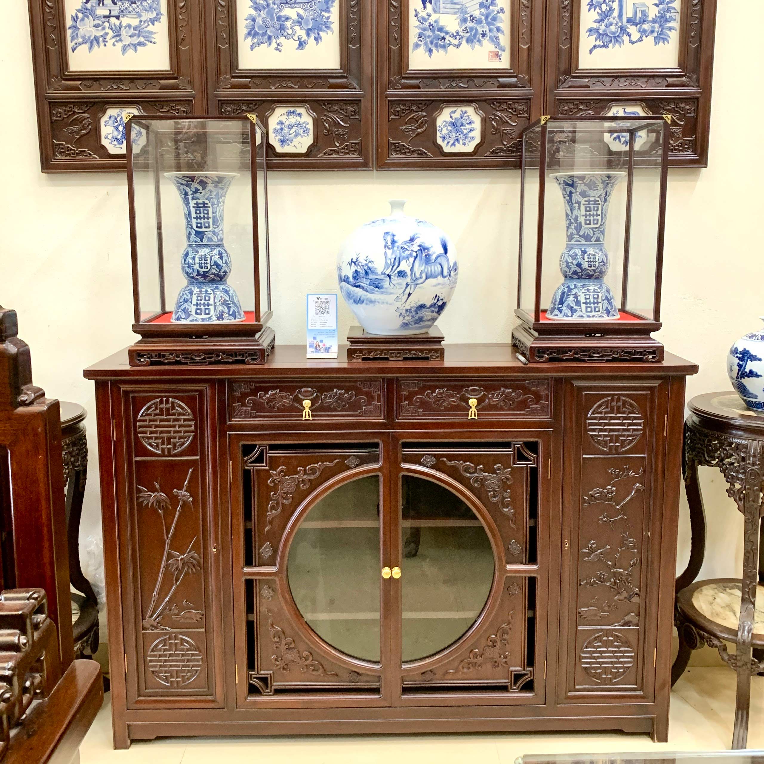 11. Tủ trang trí gỗ gụ - Tủ bày rượu đục trúc nho quân tử.